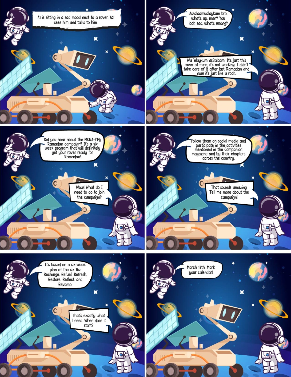 It’s the month of Shaban! That means it is almost time for our Ramadan Rover to launch. Shaban serves as a bridge between Rajab and Ramadan, the two sacred months. Ramadan is a month full of blessings. It recharges our iman to last us until the next year. People spend Shaban preparing for a successful Ramadan. To get our Ramadan Rover ready, we must prepare the launchpad. There are many steps that must be set into place in order to secure a successful launch. Each week, we will land our Ramadan Rover on a different planet. We will refuel on Planet Patience, refresh on Planet Gratitude, restore on Planet Compassion, and reflect on Planet Mindfulness.